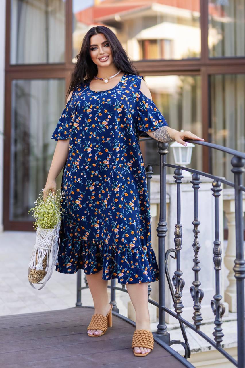 Сукня для літніх прогулянок та будь-яких заходів. Прекрасно виглядає на фігурі, приховуючи недоліки, якщо вони є. Принт-абстракція завжди актуальна і надає романтичності вашому образу. Сукня трапецієподібного силуету з округлою горловиною, по переду нагрудні виточки, та кишені ,по низу волани .